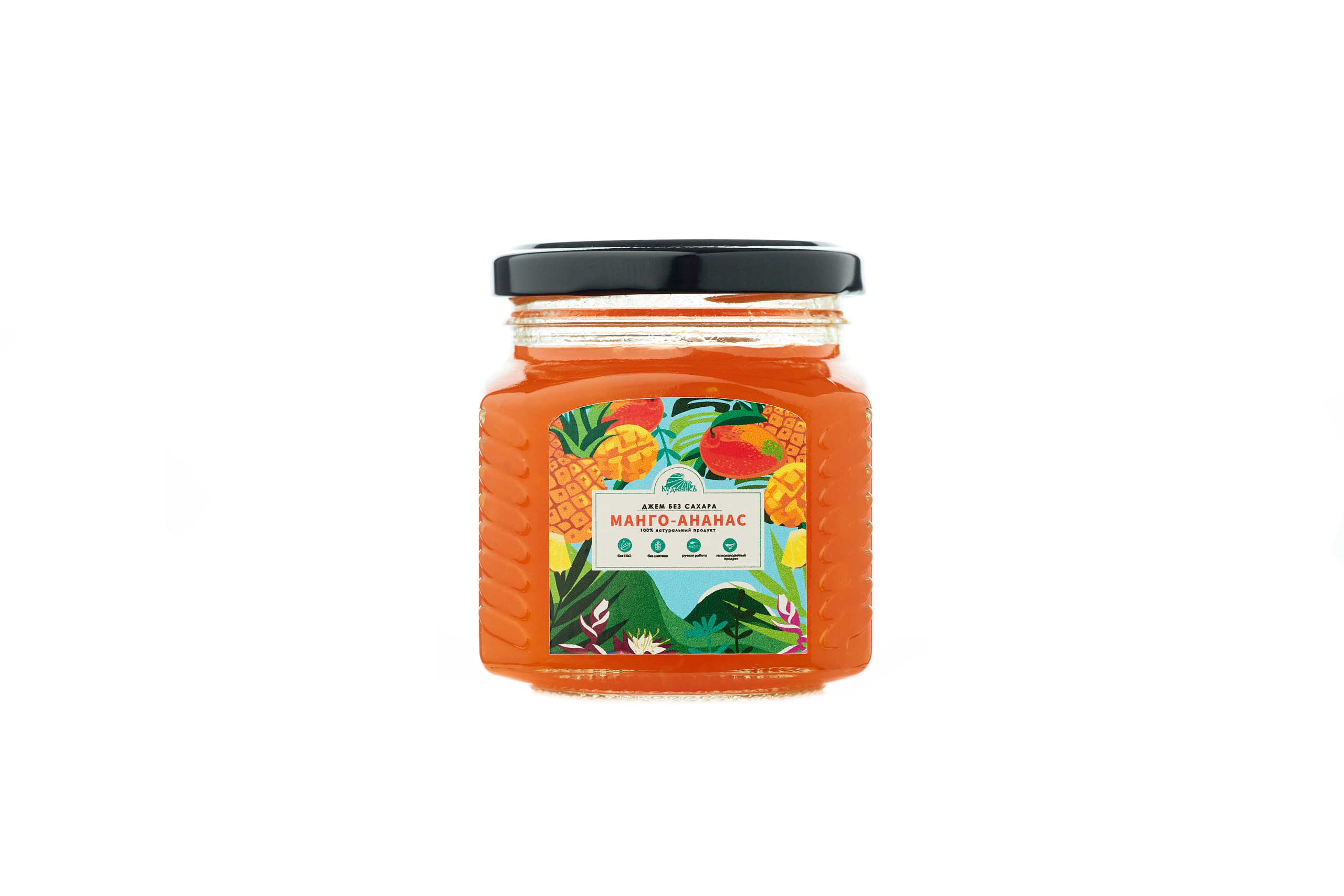Манго, ананас, вода, стевиолгликозид, агар-агар, концентрированный лимонный сок. Обратите внимание: если для вас важно отсутствие каких-либо компонентов в составе товара, уточните это у оператора при связи с ним. Он сверит состав товара на сайте с составом на упаковке, чтобы избежать ошибок.