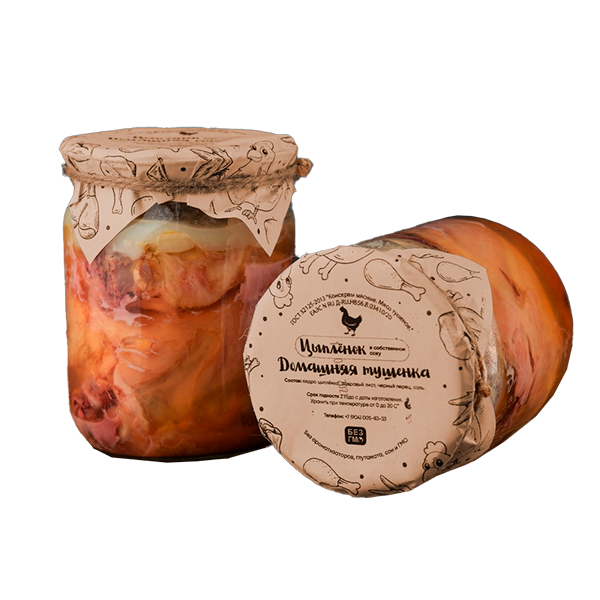 Бедро цыплёнка без кожи на кости, соль, перец горошком, лавровый лист. Срок годности 2 года.