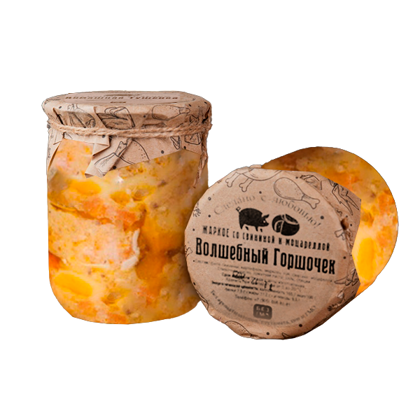 Новинка - хит! Обжарили мясо и картошку , потушили с овощами, сливочным маслом и сметаной , а после автоклавировали с ломтиками моцареллы . Получилось как из русской печи. Великолепное дополнение даже к праздничному столу!